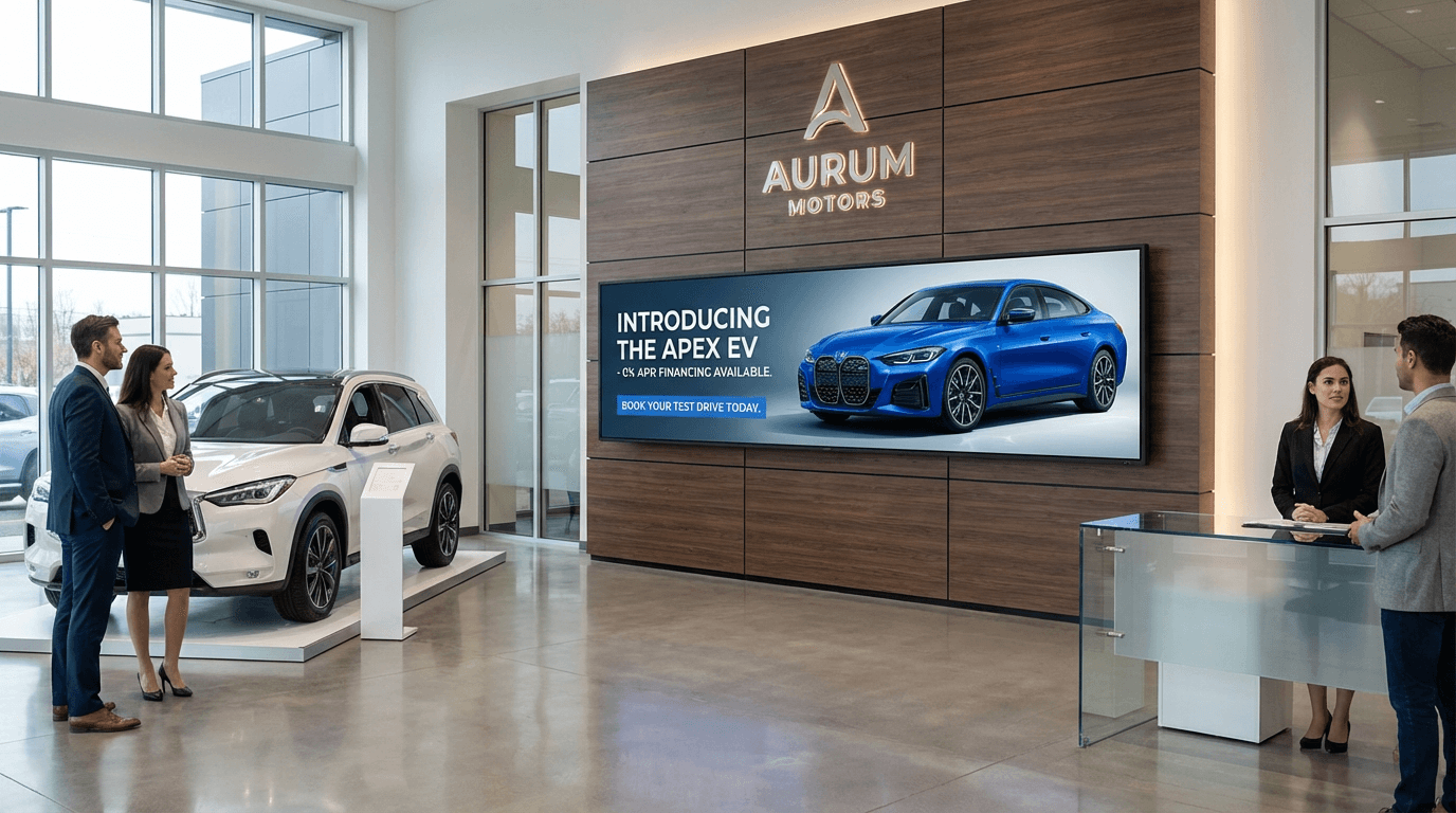 Showrooms and service centers use video walls, transparent displays, and ultra-wide screens to highlight vehicle features, promotions, and experiential storytelling.