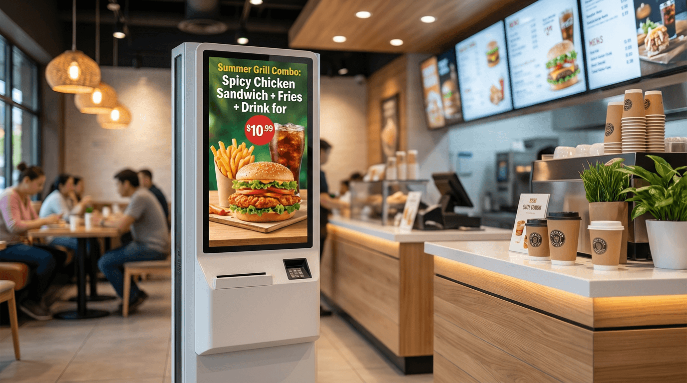 Menu boards, kitchen displays, drive-thru screens, and promotional kiosks help restaurants update pricing, run offers instantly, and improve ordering efficiency.