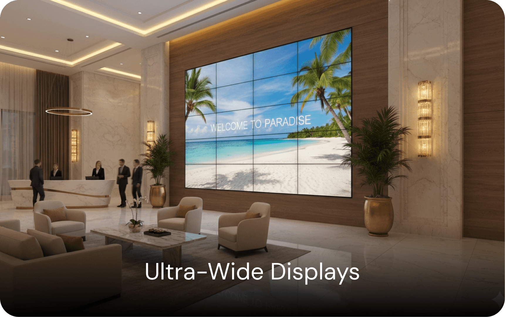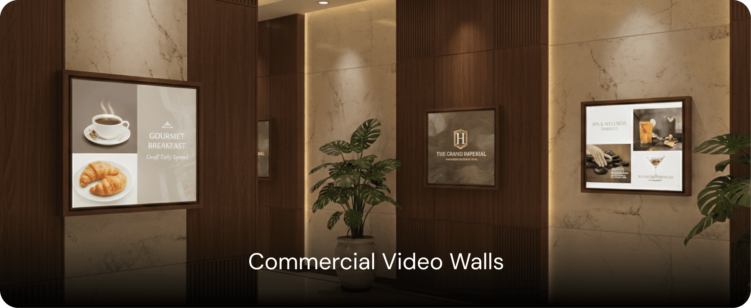 Use digital displays to welcome guests, guide them through the property, promote events, display schedules, and elevate brand identity using visually premium signage.